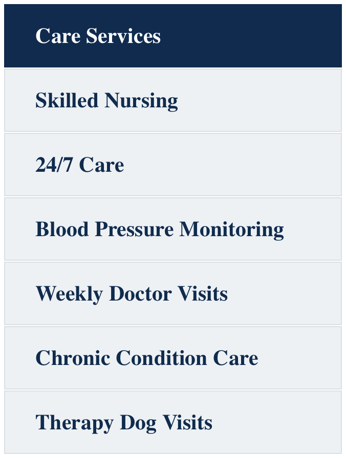 There is twenty four hour nursing care. Weekly visits are undertaken by a Doctor in the Village. Routine blood pressure monitoring is offered to all residents. Therapy dogs visit regularly.